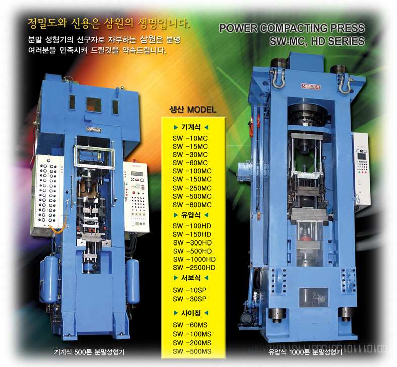 특히, 고속 분말 성형 프레스와 대형 분말 성형 프레스에 있어서는 독특한 노하우를 갖고 있으며, 수요자 욕구에